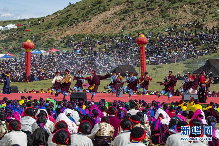 8月7日,在西藏首屆弦子舞展演現(xiàn)場,演出人員在表演弦子舞。當(dāng)日,西藏首屆弦子舞展演在昌都市芒康縣舉行。眾多演員同臺獻(xiàn)藝,表演國家級非物質(zhì)文化遺產(chǎn)弦子舞,吸引西藏各地的群眾前來觀看。新華社記者孫非攝