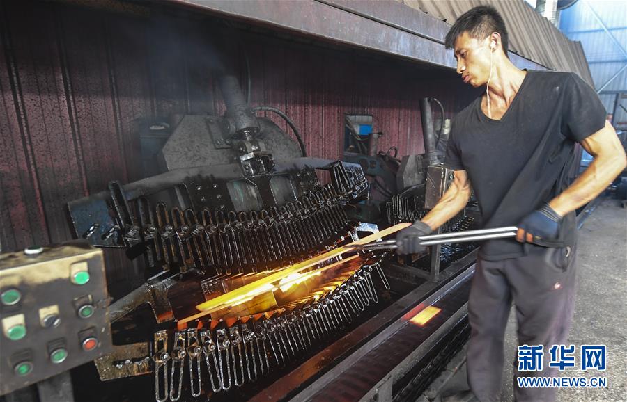 8月9日,河北大城縣南趙扶鎮(zhèn)一家板簧生產(chǎn)企業(yè)員工在板簧淬火生產(chǎn)線上作業(yè)。河北省大城縣南趙扶鎮(zhèn)是該縣農(nóng)機配件行業(yè)傳統(tǒng)生產(chǎn)基地。疫情以來,南趙扶鎮(zhèn)引導(dǎo)企業(yè)做好風險防范,在農(nóng)機配件行業(yè)與世界各地客商及品牌開展方式多樣的合作,出口訂單不降反升。截至目前,該縣農(nóng)機配件行業(yè)出口總銷量達8000余萬元,較去年同期增長30%。新華社記者李曉果攝。
