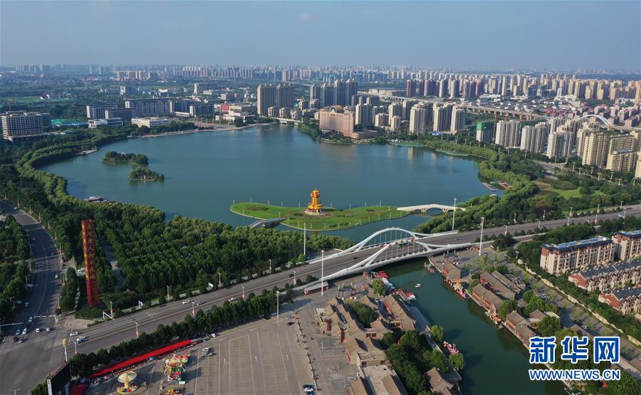 8月9日拍攝的唐山市豐南區(qū)惠豐湖景色(無人機照片)。近年來,河北省唐山市豐南區(qū)全力推動“全域治水、清水潤城”工程,形成了以唐津運河、人民公園生態(tài)廊道等以健身、休閑、旅游功能于一體的人水相親、城水相依的景觀環(huán)境,為綠色發(fā)展注入活力。新華社記者楊世堯攝。