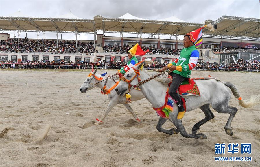 8月10日,騎手馳騁在當(dāng)雄縣賽馬場(chǎng)。