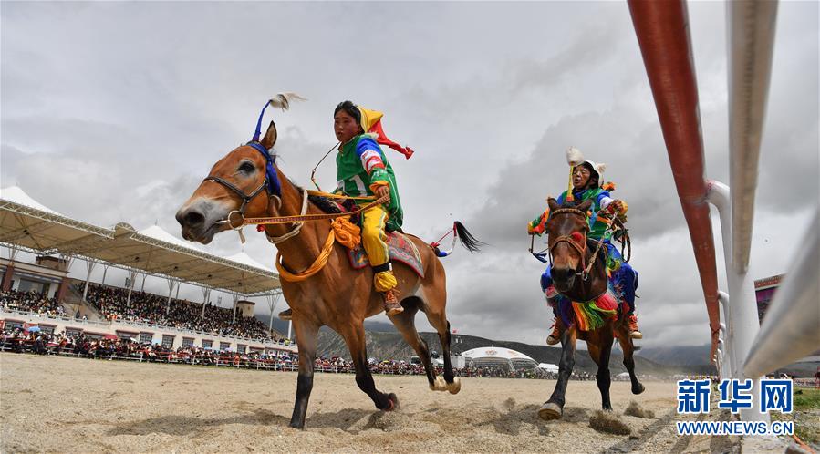 8月10日,騎手馳騁在當(dāng)雄縣賽馬場(chǎng)。新華社記者晉美多吉攝。