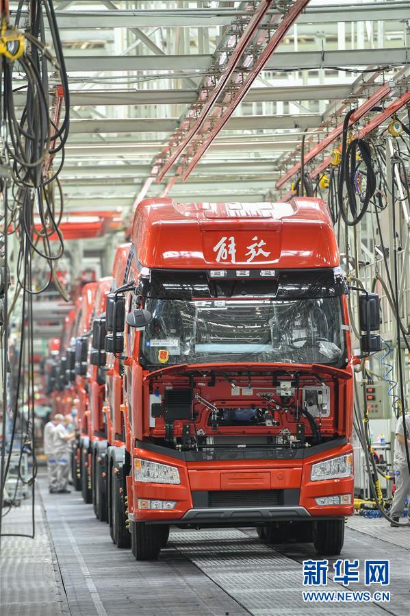 8月10日,在位于長(zhǎng)春市的一汽解放總裝車間,工人在裝配車輛。中國(guó)第一汽車集團(tuán)有限公司7月銷售整車32.2萬輛,同比增長(zhǎng)23.2%,延續(xù)上半年的增長(zhǎng)態(tài)勢(shì)。新華社記者張楠攝。