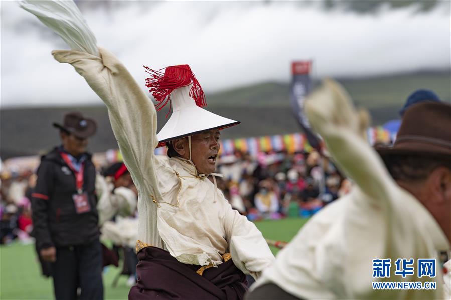 8月10日,當雄縣牧民在為參加拔河比賽的隊友加油助威。新華社記者普布扎西攝。