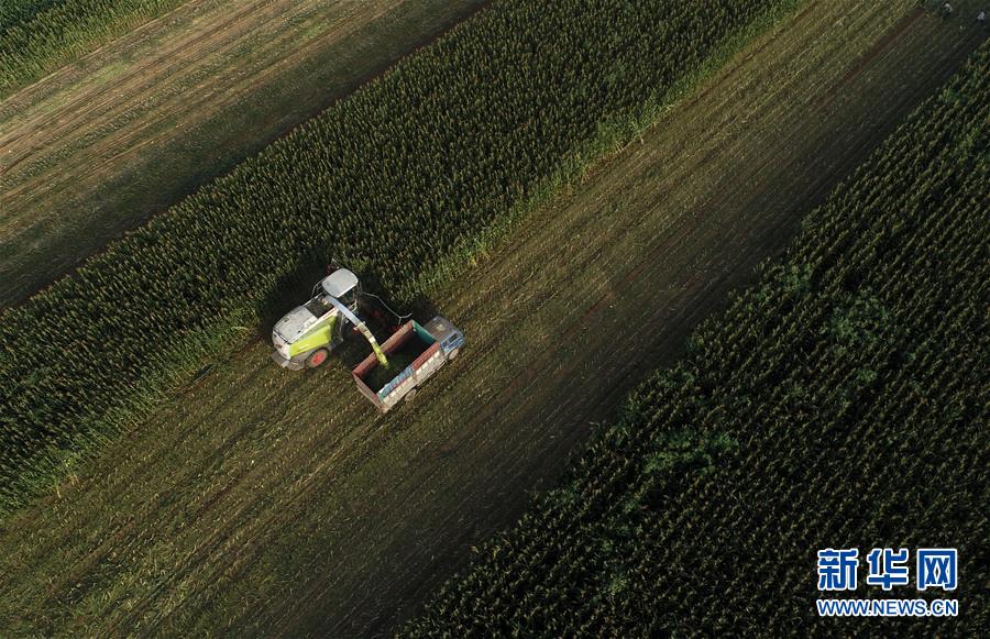 8月11日,灤南縣馬城鎮(zhèn)湛店子村的農民使用大型機械收獲青貯玉米(無人機照片)。近日,河北省灤南縣的12萬畝青貯玉米陸續(xù)開始收獲,為當地奶牛養(yǎng)殖提供新鮮優(yōu)質飼料。作為河北省奶牛養(yǎng)殖大縣,灤南縣近年來大力推廣奶牛青貯玉米喂養(yǎng)模式,引導農民種植青貯玉米,促進農民增收。新華社記者楊世堯攝