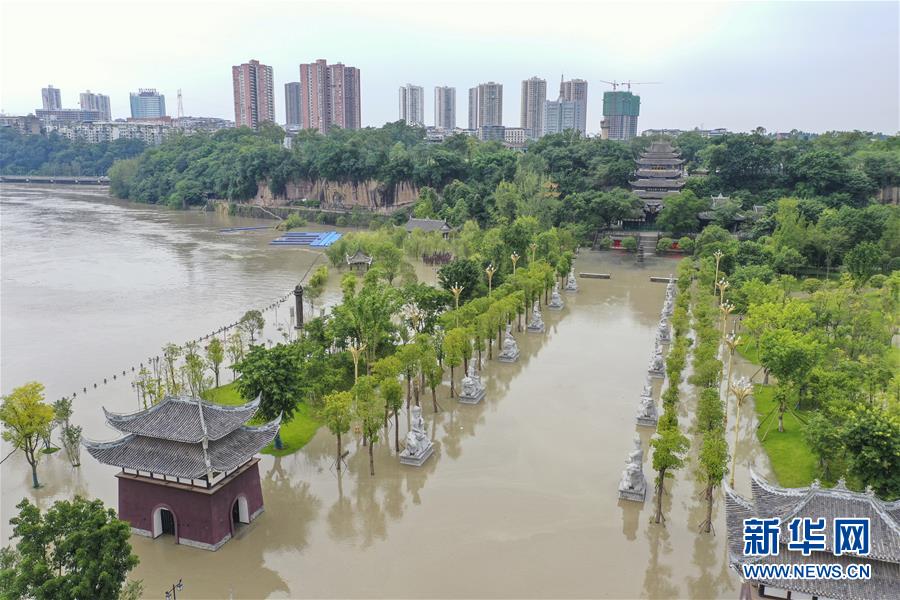 8月12日,重慶市潼南區(qū)大佛寺景區(qū),涪江洪水淹沒景區(qū)廣場(無人機(jī)照片)。受強(qiáng)降雨影響,涪江潼南段迎來過境洪水。截至12日下午5時,涪江潼南城區(qū)段最高水位238.5米,超警戒水位0.5米,低于保證水位(240米)。此次過境洪水導(dǎo)致潼南區(qū)部分場鎮(zhèn)低洼地段局部進(jìn)水,約2700畝農(nóng)作物不同程度受災(zāi)。新華社記者 黃偉 攝