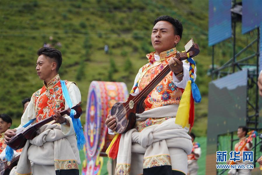 8月12日,演員在開幕式上表演舞蹈。當日,2020中國碌曲鍋莊舞展演暨甘南藏族自治州第六屆少數(shù)民族傳統(tǒng)體育運動會在甘肅省甘南州碌曲縣夏澤灘草原上舉行。開幕式上,三千余名身著節(jié)日盛裝的演員和當?shù)厝罕娫诓菰掀鹞瑁旰蟪跚绲牟菰铣錆M歡聲笑語。新華社記者 耿馨寧 攝