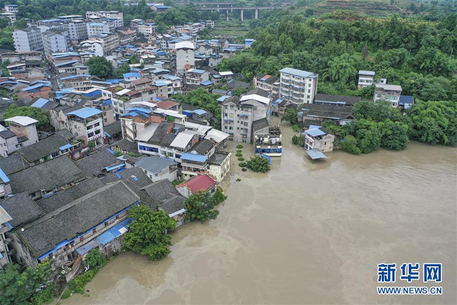 8月13日,在重慶市潼南區(qū)米心鎮(zhèn),涪江水位明顯上漲,洪水倒灌進場鎮(zhèn)(無人機照片)。受上游強降雨影響,嘉陵江近日出現(xiàn)明顯漲水過程,“嘉陵江2020年第1號洪水”已在嘉陵江支流涪江形成。重慶市正式啟動洪水防御Ⅱ級應急響應。據(jù)初步統(tǒng)計,截至13日16時30分,位于涪江畔的重慶市潼南區(qū),沿涪江7個鎮(zhèn)街不同程度受災,受災人數(shù)8209人,轉(zhuǎn)移人口6658人,農(nóng)作物受災面積5579畝。新華社記者黃偉攝