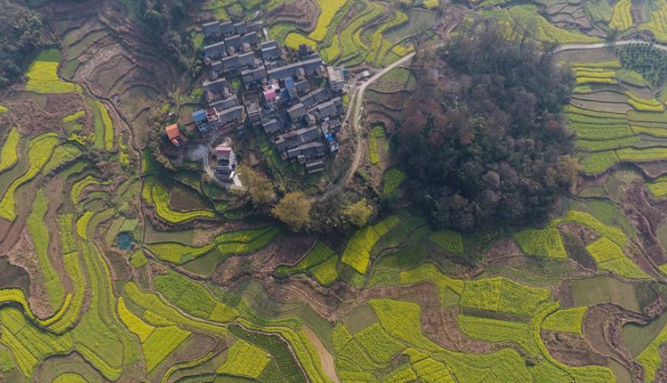 這是3月29日無人機拍攝的廣西融水苗族自治縣桿洞鄉(xiāng)黨鳩村的田園春色。