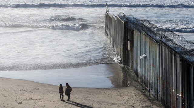 在墨西哥邊境城市蒂華納的海岸邊,一堵數(shù)米高的邊境隔離墻從海水中豎起,向東延伸,不見(jiàn)盡頭。