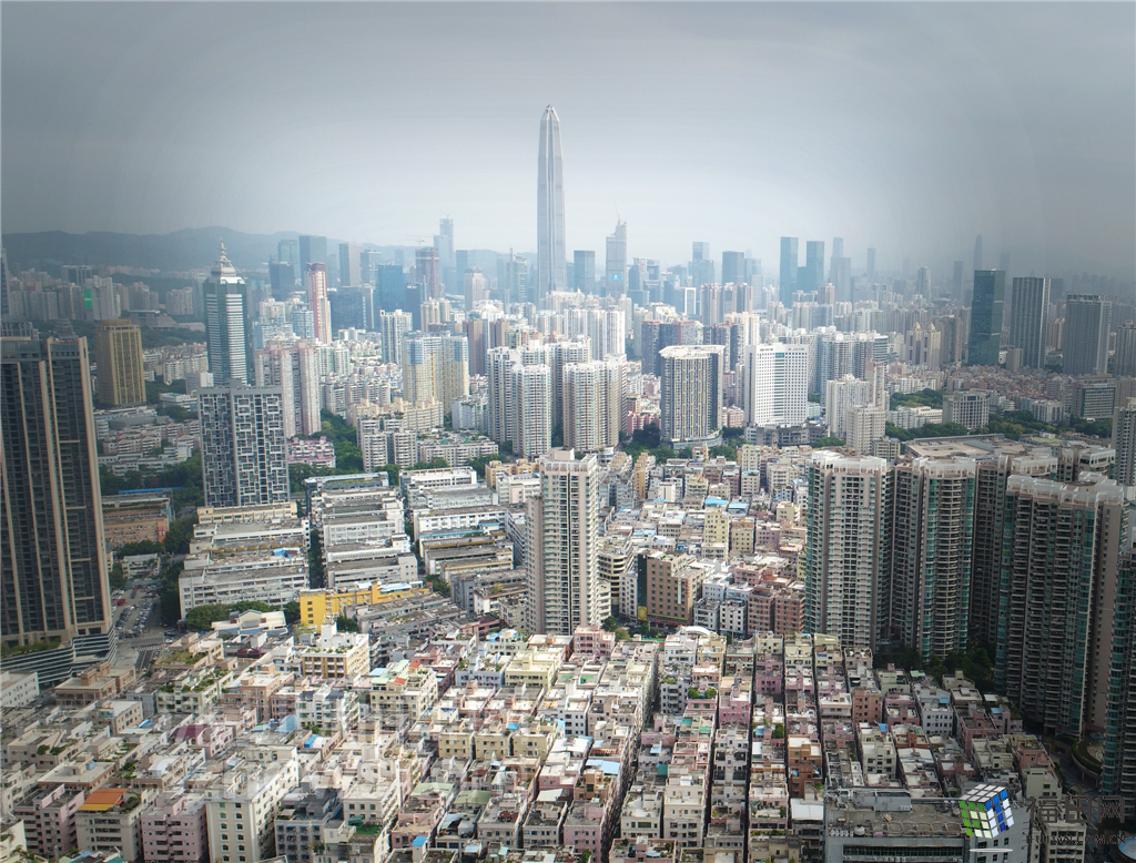 8月30日下午,記者通過無人機的視角看到,福田區(qū)許多地標(biāo)性建筑物在灰霾的籠罩下顯得“猶抱琵琶半遮面”,不能以“全面目”示人。