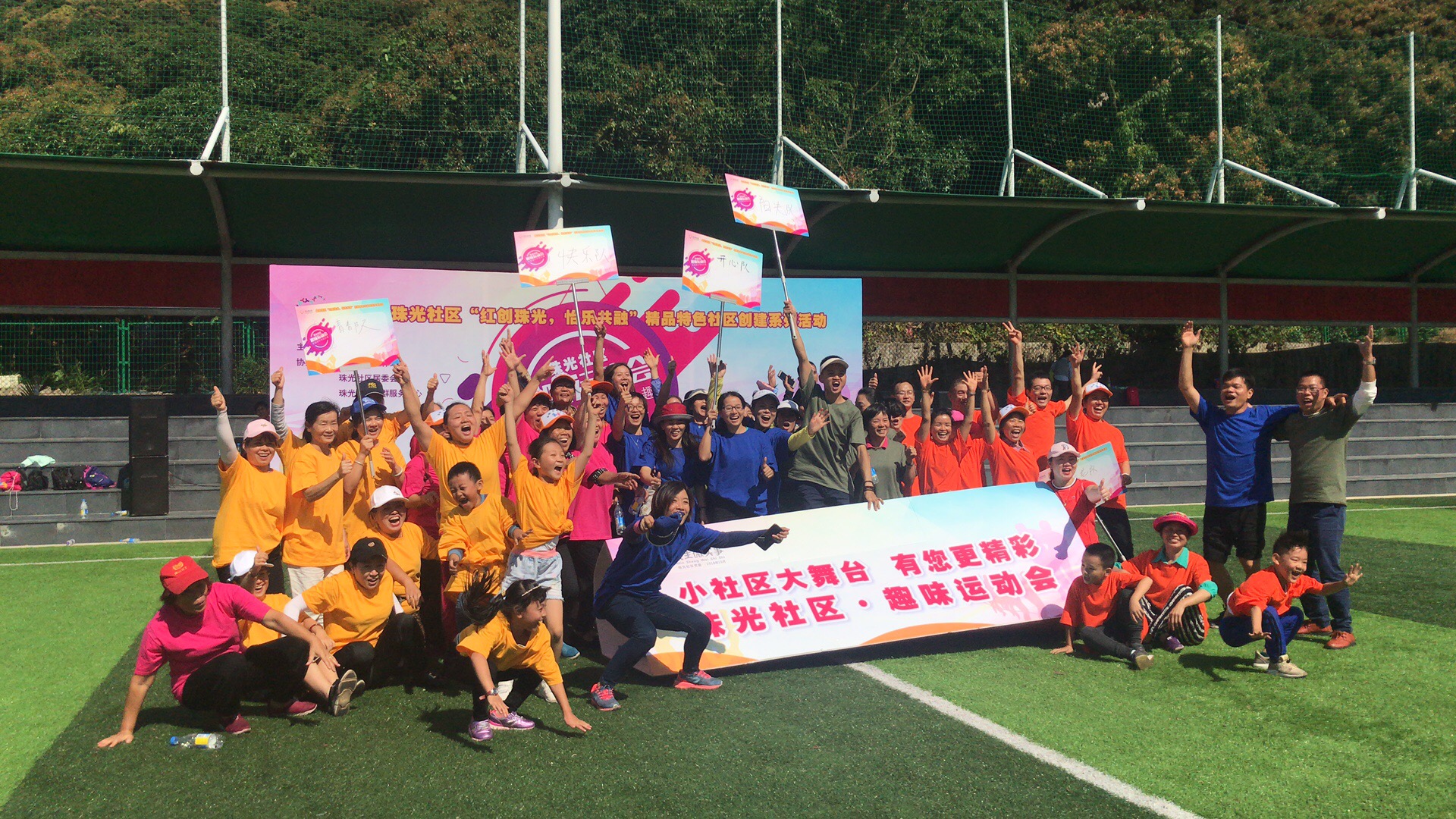 深圳新聞網(wǎng)訊 這個(gè)周末在南山桃源街道的珠光社區(qū)足球場(chǎng)變成五彩繽紛歡樂(lè)的海洋了,因?yàn)轭伾?,因?yàn)榧饨?,因?yàn)榧で椋驗(yàn)槿の哆\(yùn)動(dòng)會(huì)開(kāi)始了!