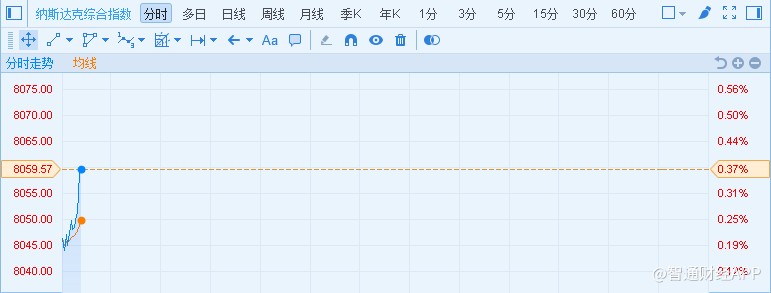 智通財經APP獲悉,周三,美股基本平開,其中納斯達克指數盤初高走,升穿8046.315點,創(chuàng)紀錄新高。截至發(fā)稿,納指報8059.57,漲30點或0.37%。