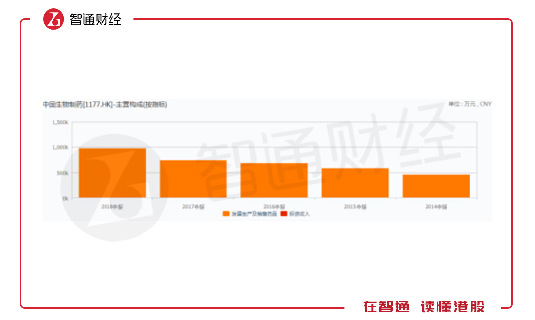 再說中國生物制藥,2018年中期的收入是97.25億,同比增長30%;歸屬于母公司持有者應(yīng)占盈利約13.66億,同比增長24.1%。期間計入權(quán)益投資和金融資產(chǎn)未實現(xiàn)公允價值利潤及虧損和海外匯兌差異凈額前,歸屬于母公司持有者應(yīng)占盈利約14.27億元,較去年同期增長約41.9%。