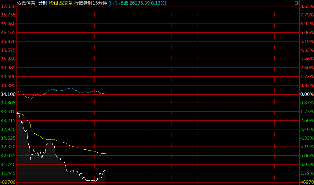 智通財(cái)經(jīng)APP獲悉,安踏體育(02020)盤中跌至31.2港元,創(chuàng)年內(nèi)新低,截至10時(shí)50分,跌8.5%,報(bào)價(jià)31.2港元,成交額2.28億。