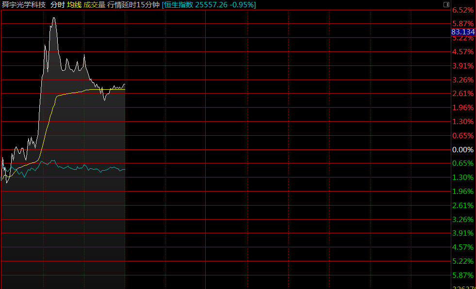 9月手機(jī)鏡頭出貨量同比增61%,舜宇光學(xué)(02382)早盤股價(jià)直線拉升,截至10時(shí)07分,漲6.08%,報(bào)價(jià)83.75港元,成交額2.68億。