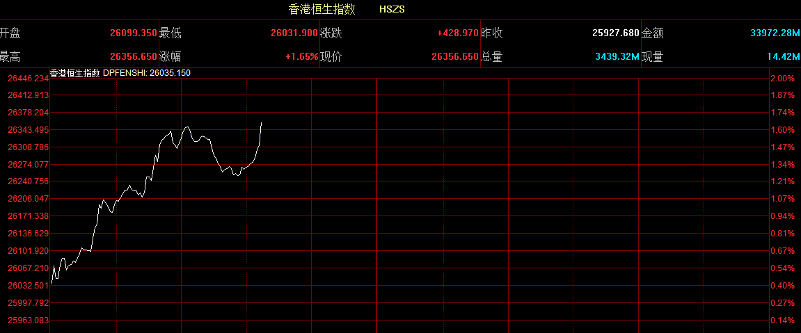 智通財經(jīng)APP獲悉,恒生指數(shù)開盤漲0.66%,報26099.35點。國企指數(shù)漲0.63%,報10453.82點。紅籌指數(shù)漲0.48%,報4281.96點。大市盤前成交11.68億港元。