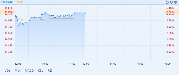 智通財(cái)經(jīng)APP獲悉,本屆G20峰會上,中美就經(jīng)貿(mào)問題達(dá)成共識,決定停止升級關(guān)稅等貿(mào)易限制措施。貿(mào)易摩擦的超預(yù)期緩和,為小米憑借商業(yè)模式創(chuàng)新和技術(shù)創(chuàng)新參與國際競爭松綁,該股股價(jià)應(yīng)聲而漲。截至13時(shí)05分,漲4.76%,報(bào)價(jià)14.96港元,成交額4.03億。