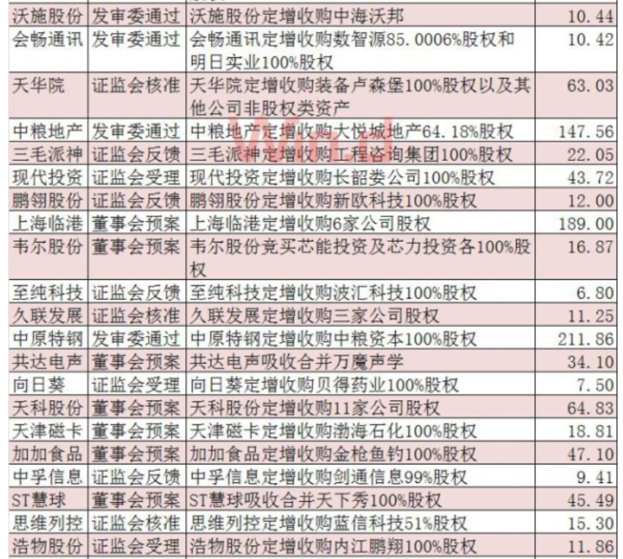 并購重組經(jīng)歷近二年的低谷后,政策由緊到松,目前快速回暖,概念股逐步走強(qiáng),近日又有多家公司公布并購方案;