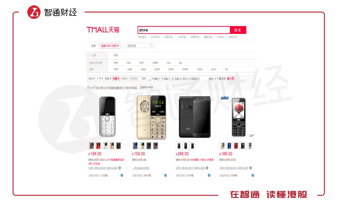 當然,也有部分手機品牌存活下來的,比如1992年成立的波導手機,以及2002年成立的天語手機,其中波導手機在2004-2005創(chuàng)造輝煌,當時年銷售突破1000萬臺,但2006年后市場份額急速下降,目前雖有機型在賣,但少人問津。在天貓上,波導手機最大的月成交筆數(shù)為1.3萬筆,天語手機為4萬筆。
