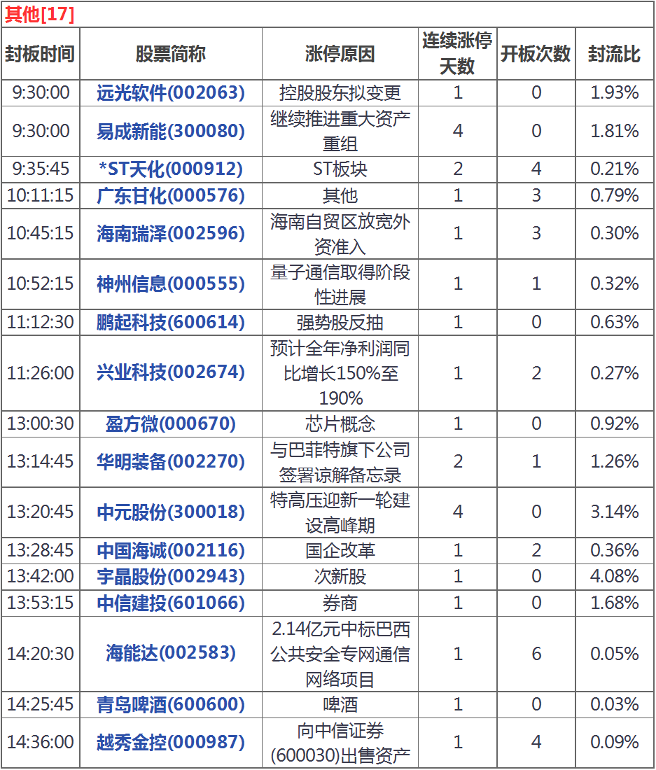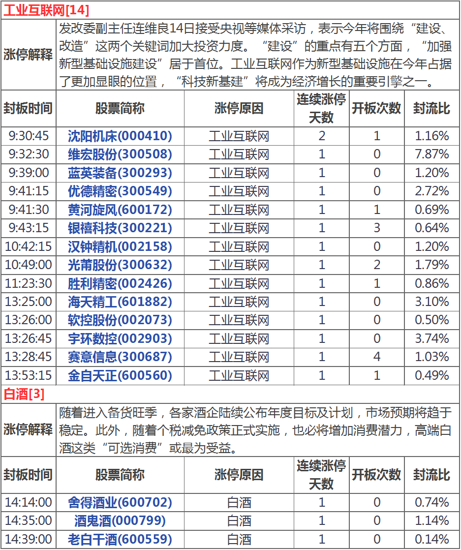 今天漲停家數較上一交易日有所增加,兩市51家漲停;跌停8家。成交量方面,滬市成交1374億元,深市成交1822億元,兩市總成交額約為3196元,較上一交易日放量365億元。盤面上,白酒、工業(yè)互聯(lián)網、券商導等板塊漲幅居前,煤炭、超導等板塊跌幅居前。