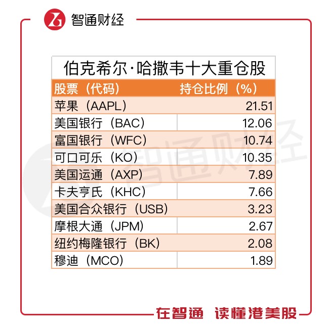 截至12月末,伯克希爾的十大重倉股分別為蘋果、美國銀行、富國銀行、可口可樂、美國運(yùn)通、卡夫亨氏、美國合眾銀行、摩根大通、紐約梅隆銀行及穆迪。