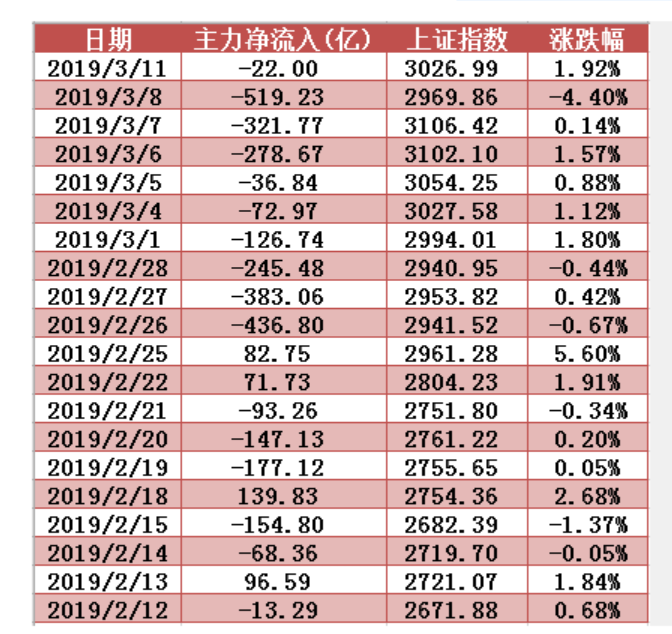 近20個交易日兩市主力資金凈流入額變動圖表,連續(xù)10日資金凈流出;
