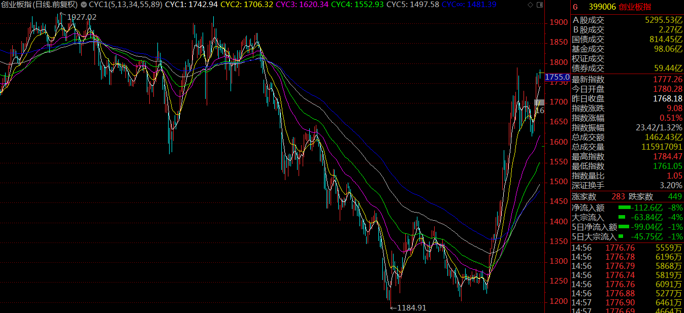 周一市場突破三月份的中樞結(jié)構(gòu),開啟了新一輪的上漲,市場情緒良好,基本維持了日均百股漲停的規(guī)模。至周四,滬指上漲5.04%報收3246.57點,深成指漲5.14%報收10415.8點,創(chuàng)業(yè)板漲4.94%報收1777.26點。值得留意的是,相較于第一波行情創(chuàng)業(yè)板指數(shù)大幅跑贏上證指數(shù)來說,這一次代表小盤股的創(chuàng)業(yè)板指數(shù)要弱于預(yù)期。