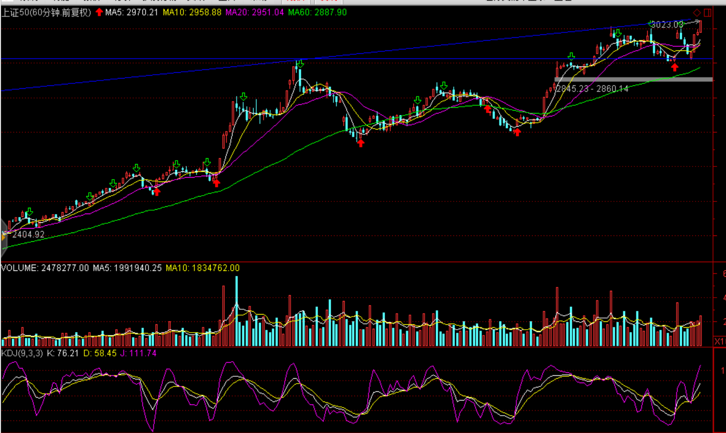 技術(shù)面:短期股強(qiáng)勁反彈修復(fù)調(diào)整結(jié)構(gòu),維持高位震蕩,60分鐘看上證50面臨壓力,預(yù)計(jì)今日股指沖高受阻,小陰或小陽報收。