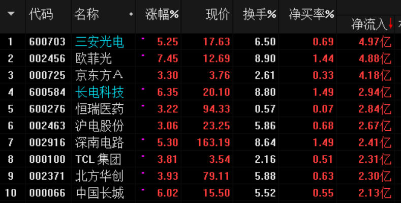 資金凈流入前10名公司均為科技股,多數(shù)為MSCI擴容成分股公司。