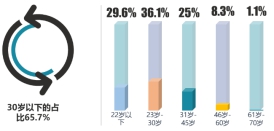 本次調(diào)研中,連鎖餐飲消費(fèi)者中,23歲-30歲是主要消費(fèi)者,占比36.1%,30歲以下的消費(fèi)者占比為65.7%。52.8%的受訪者學(xué)歷為高中/中專/技校及以下 。
