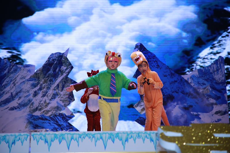 現(xiàn)場(chǎng)表演精彩紛呈,內(nèi)容積極向上,形式豐富多彩,表演生動(dòng)逼真,充分展示出選手們奮發(fā)向上的精神風(fēng)貌,同時(shí)也展現(xiàn)了選手們的外語(yǔ)實(shí)際運(yùn)用能力和自主創(chuàng)新精神?!度虬坠蔷贰ⅰ端廊恕?、《冰河世紀(jì)》、《獅子王》、《皇帝的新裝》、《白雪公主和七個(gè)小矮人》、《小紅帽》、《馬良的神筆》……一個(gè)個(gè)經(jīng)典的童話故事,惟妙惟肖的表演,生動(dòng)的詮釋著故事里的每一個(gè)角色,把觀眾帶入一個(gè)個(gè)美麗的童話世界。