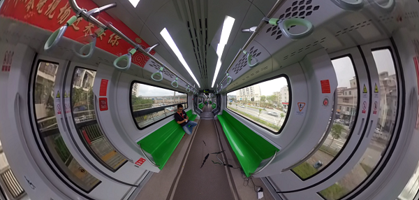 比亞迪云軌可廣泛用于一二線城市的交通接駁線、加密線,三四線城市的交通主干線,以及旅游景區(qū)的觀光線等場(chǎng)景。結(jié)合云軌視頻回傳等重點(diǎn)業(yè)務(wù)場(chǎng)景,云軌車內(nèi)安裝了360球機(jī)攝像頭,通過5G網(wǎng)絡(luò)傳輸實(shí)時(shí)回傳拍攝到的全景視頻畫面。遠(yuǎn)程操控人員借助VR眼鏡及大屏幕觀看云軌高清視頻畫面,以第一視角控制和監(jiān)測(cè)云軌運(yùn)行狀況,能在第一時(shí)間發(fā)現(xiàn)異常,迅速做出反應(yīng),預(yù)防交通危險(xiǎn)。