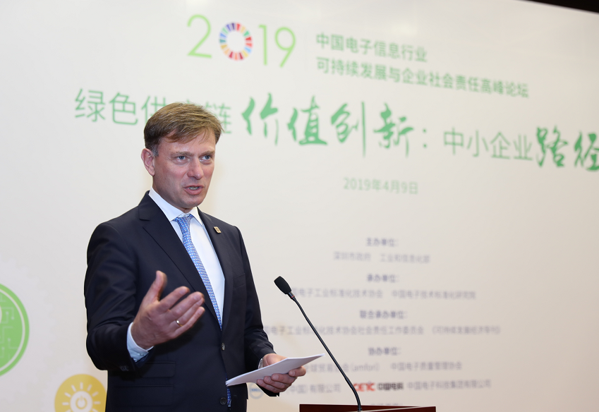 深圳新聞網(wǎng)4月10日訊 4月9日,“中國(guó)電子信息行業(yè)2019可持續(xù)發(fā)展與企業(yè)社會(huì)責(zé)任高峰論壇”在深圳會(huì)展中心成功舉行。本次會(huì)議由深圳市政府、工業(yè)和信息化部主辦,中國(guó)電子工業(yè)標(biāo)準(zhǔn)化技術(shù)協(xié)會(huì)、中國(guó)電子技術(shù)標(biāo)準(zhǔn)化研究院承辦,中國(guó)電子工業(yè)標(biāo)準(zhǔn)化技術(shù)協(xié)會(huì)社會(huì)責(zé)任工作委員會(huì)、《可持續(xù)發(fā)展經(jīng)濟(jì)導(dǎo)刊》(原《WTO經(jīng)濟(jì)導(dǎo)刊》)聯(lián)合承辦,全球貿(mào)易協(xié)會(huì)(amfori)、中國(guó)電子質(zhì)量管理協(xié)會(huì)、戴爾(中國(guó))有限公司、中國(guó)電子科技集團(tuán)有限公司協(xié)辦,論壇還得到了深圳市創(chuàng)新企業(yè)社會(huì)責(zé)任促進(jìn)中心和責(zé)揚(yáng)天下(北京)管理顧問(wèn)有限公司的大力支持。