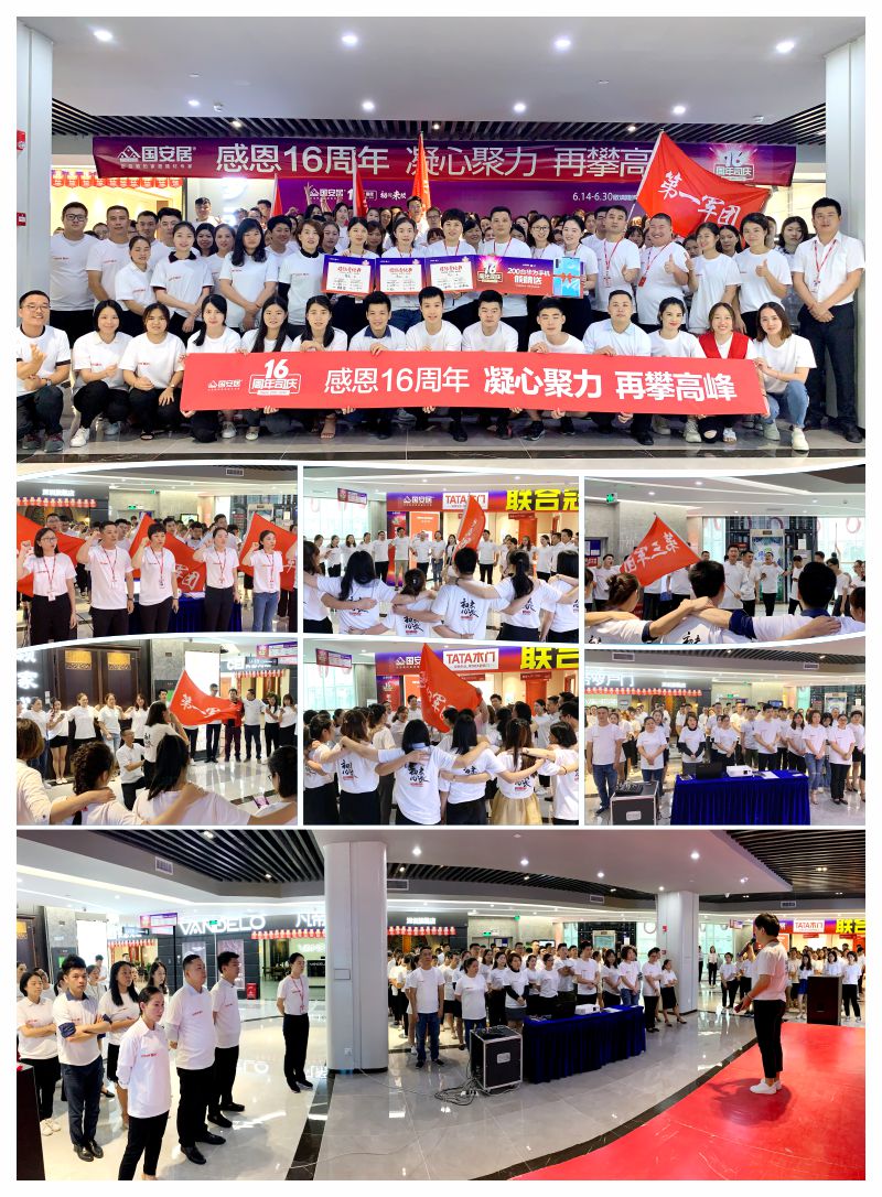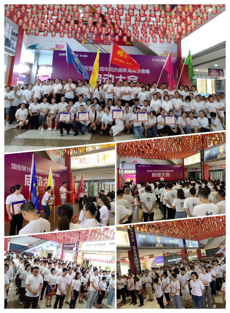 6月13日-14日,國(guó)安居“16周年司慶”啟動(dòng)大會(huì)在國(guó)安居深惠門(mén)店火熱舉行,800家品牌商家的銷(xiāo)售精英、員工代表、熱心市民等近萬(wàn)余人共同見(jiàn)證了這一意義非凡的時(shí)刻。參與者身著統(tǒng)一服裝,早早就聚集在商場(chǎng)中庭,所有人都把笑容掛在臉上,展現(xiàn)出自己最陽(yáng)光、最開(kāi)心、最具活力的一面。