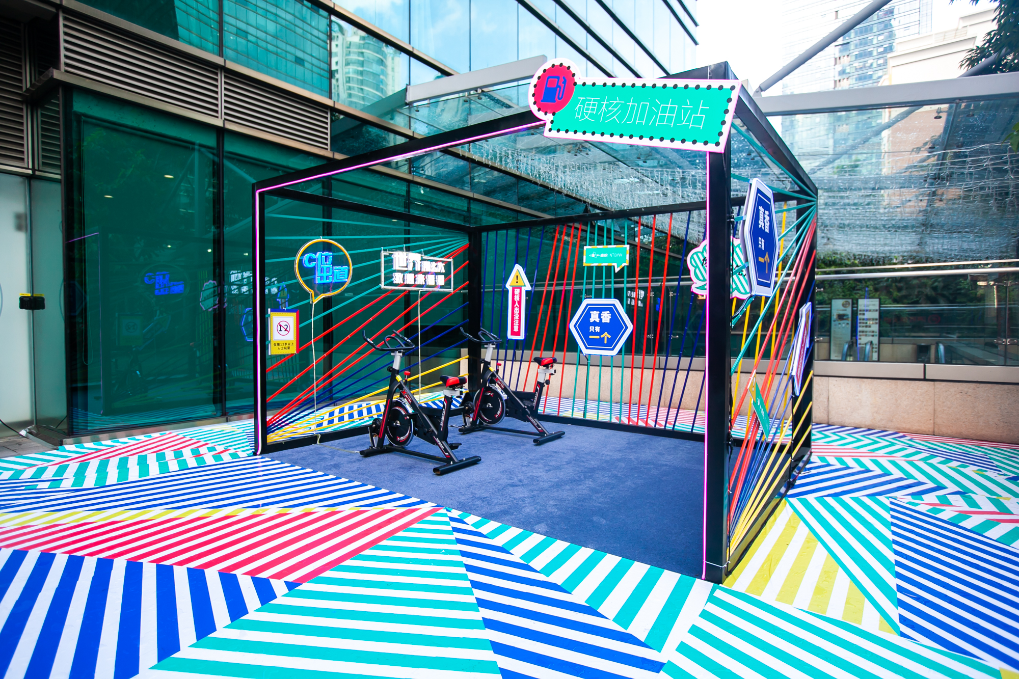通過線下空間打造可供青年人拍照打卡的主題場景,讓“硬核”青年可以找到自身標(biāo)簽,從而自發(fā)二次傳播。在“硬核”的概念中,PR活動延伸出夏日音樂祭、無人機紅包雨、硬核格斗機器人、流行嘻哈說唱、電音泳池趴等深受年輕人喜好體驗項目。