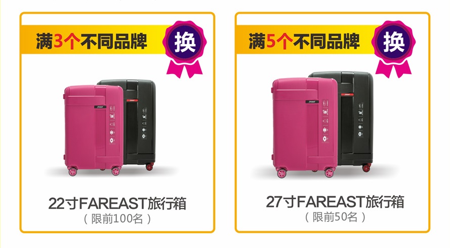7.27-8.18,在國安居下定3單以上(單筆實交3000元)可以換購FAREAST豪華旅行箱。禮品有限,送完即止,不要錯過機會哦。
