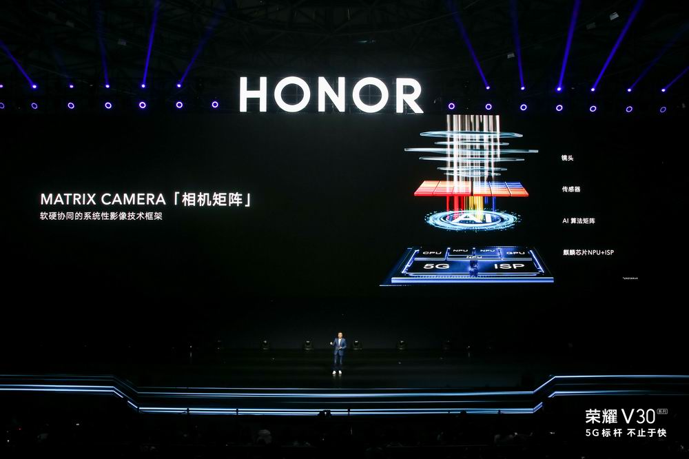 大幅提升的影像能力是榮耀V30在5G之外的另一大看點。此前在網(wǎng)絡上已經(jīng)有傳言的Matrix Camera突破性相機矩陣得到了趙明的證實,這是一種軟硬協(xié)同的技術(shù)框架,通過分布式的RAW域AI算法矩陣,借助自研達芬奇架構(gòu)NPU和麒麟ISP強大處理能力,與聯(lián)合設(shè)計的光學系統(tǒng)深度融合,帶來綜合影像能力質(zhì)的提升。其中包括全方位的影像能力提升,例如可以媲美億級像素的超清模式;極暗光下的高感光能力與低噪點控制,ISO超感光能力高達409600;電影級五軸視頻智慧防抖;突破性的視頻HDR能力;以及此前已經(jīng)被曝光過的卓越暗光攝像能力。