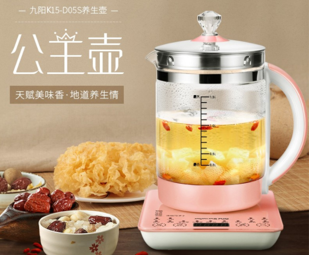 九陽(Joyoung) K15-D05S養(yǎng)生壺食品級高硼硅玻璃粉紅色