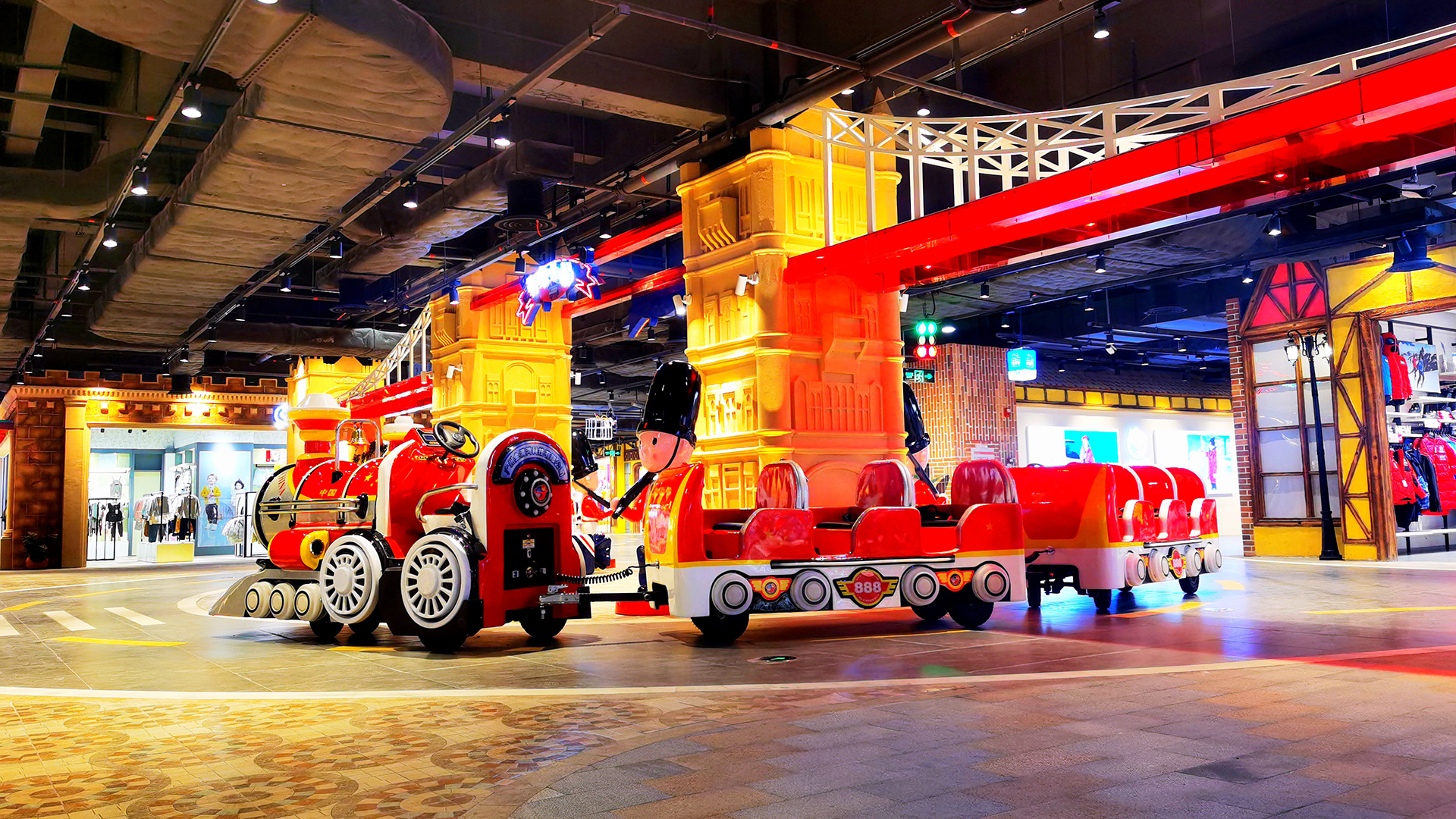 英倫小鎮(zhèn)——六樓的英倫風(fēng)情小鎮(zhèn),多家時(shí)尚兒童服飾讓潮媽們一站式買到孩子日常生活的所有;兒童教育、娛樂、餐飲一樣也不缺,是溜娃兒的好地方。