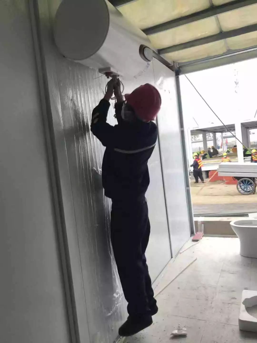 據了解,雷神山醫(yī)院工地上正在24小時不間斷地施工,現場每時每刻都在變化。目前,雷神山醫(yī)院的部分房間正在進行內部裝修,海爾突擊隊的隊員在現場接受項目的統一指揮,2月4日,300臺熱水器設備按計劃全部安裝完成。