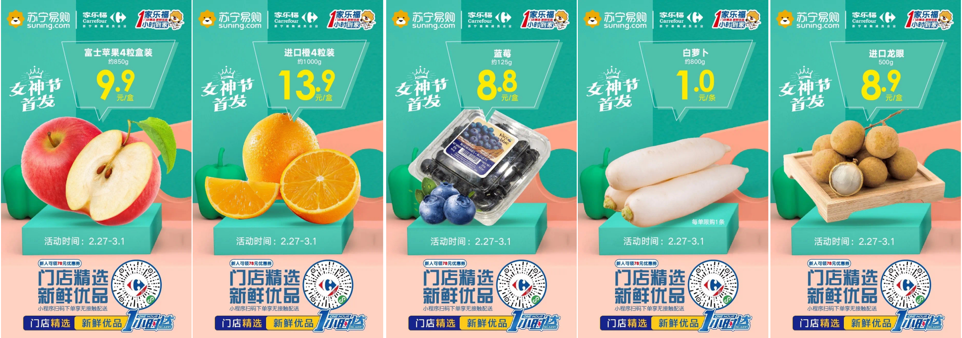 此時此刻,提高自身免疫力才是關(guān)鍵。蔬果家族可以說是生鮮里的寶藏品類了。2月27日至3月1日,多款維生素滿滿的健康蔬果,驚爆價低至1元!富士蘋果4粒裝9.9元/盒、進(jìn)口橙四粒裝13.9元/盒、藍(lán)莓8.8元/盒、白蘿卜1元/條、進(jìn)口龍眼8.9元/盒。