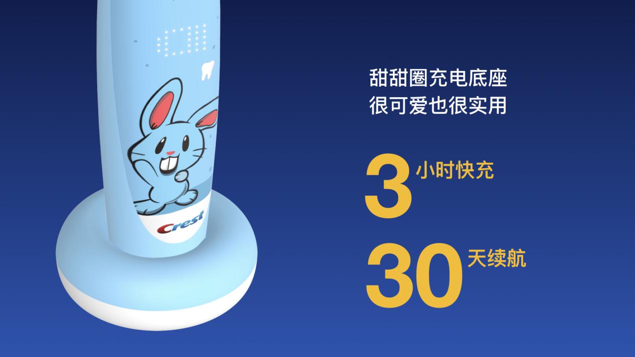 S7000K智能音樂兒童電動(dòng)牙刷還配備甜甜圈充電底座,做到了3小時(shí)快速充電,實(shí)現(xiàn)30天續(xù)航的目的。