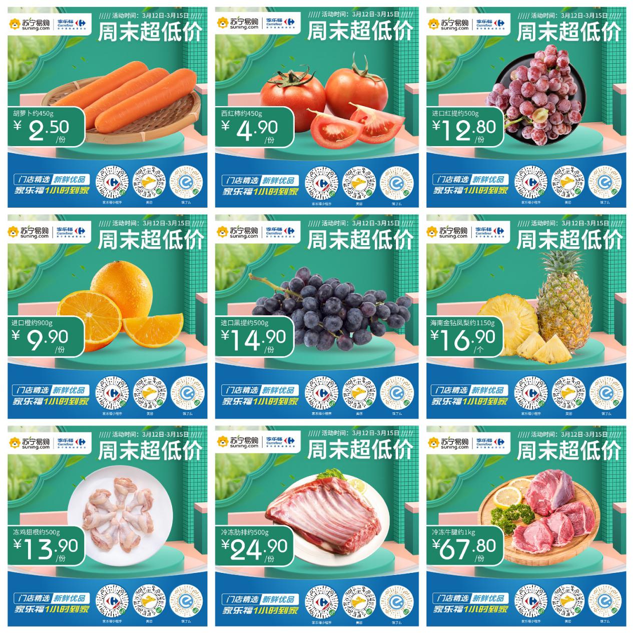 又到周末了,大伙兒再買(mǎi)點(diǎn)菜在家做做飯吧!家樂(lè)福生鮮招牌——“周末超低價(jià)”系列單品搶“鮮”看!胡蘿卜、西紅柿、橙子、黑提、紅提、金鉆鳳梨、雞翅根、肋排、牛腱,全方位滿(mǎn)足你挑剔的大“胃”口!