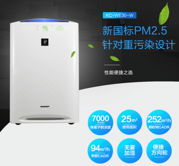夏普 KC-WE30-W采用的是簡潔大方的外觀設(shè)計(jì),產(chǎn)品尺寸為393mm*270mm*603mm,凈離子群結(jié)合濾網(wǎng)的凈化方式,能夠有效去除甲醛,PM2.5以及其他有害細(xì)微顆粒物。這款產(chǎn)品具備特有的凈離子群空間凈化技術(shù),對霉菌和病毒的殺滅有很大幫助,最后離子會形成水返回到空氣中。