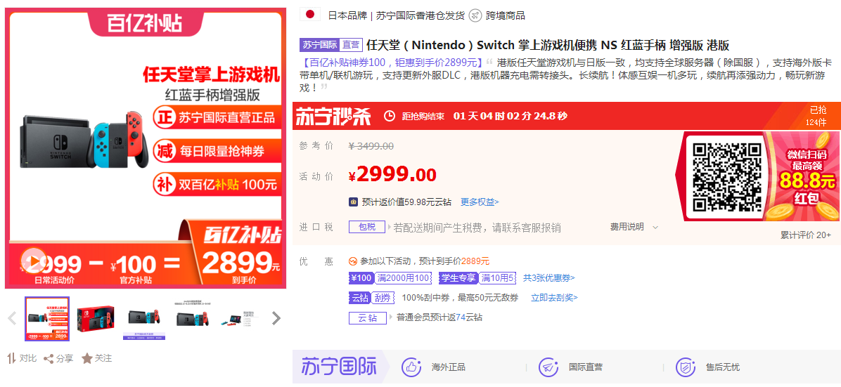 數(shù)據(jù)顯示,6月29日-7月5日,蘇寧國(guó)際口紅銷量增長(zhǎng)明顯,最受歡迎的口紅色號(hào)為mac小辣椒磚紅色。為了給高考生鼓勵(lì),家長(zhǎng)們也是操碎了心。數(shù)據(jù)顯示,6月29日-7月5日,蘇寧國(guó)際switch游戲機(jī)也銷售也創(chuàng)新高。目前,蘇寧國(guó)際該產(chǎn)品正參與百億補(bǔ)貼,優(yōu)惠力度與618期間差不多,不少家長(zhǎng)選擇購(gòu)買這款產(chǎn)品作為孩子們苦讀的獎(jiǎng)勵(lì)。