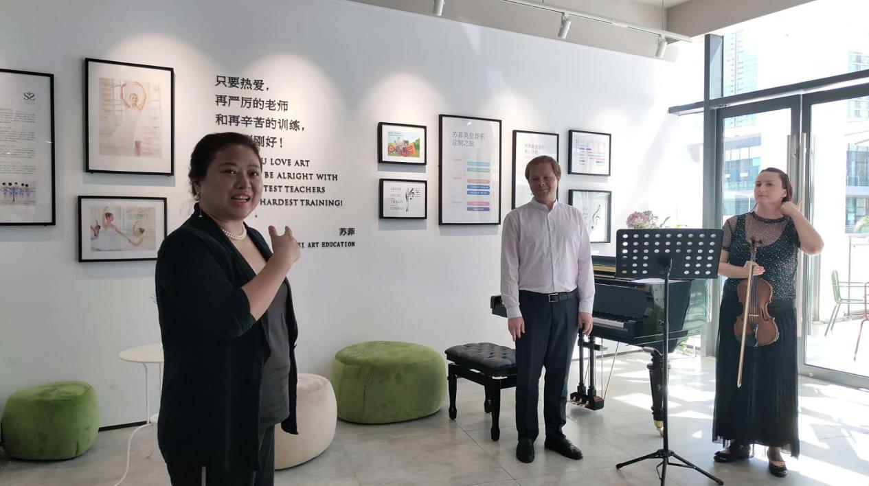 在欣賞完來自白俄羅斯的鋼琴老師和小提琴老師帶來《肖邦練習曲1C大調(diào)》以及《愛之憂傷》、《美麗的羅斯瑪琳》后,可愛的孩子們帶來了一堂“芭蕾舞”教學示范課,一群僅4、5歲的孩子們在芭蕾舞老師的帶領下,感受芭蕾舞的韻律,學習芭蕾舞的基本坐姿以及芭蕾舞的初級分解動作。課程中,老師更注重讓孩子理解芭蕾,了解芭蕾禮儀,也運用可愛的教具讓孩子們不分散注意力,全神貫注參與到芭蕾舞學習當中來。 據(jù)了解,蘇菲教育將在中國很小眾的英皇課程普及化,讓孩子在家門口就可以接觸到國際通行與高度認可的芭蕾舞和鋼琴課程。作為深圳市英國皇家芭蕾舞和鋼琴的指定考點,學生獲得的證書含金量很高,不但可以在申請國外大學時增加入學學分,還可以同步享受國外大學獎學金制度。與此同時,蘇菲教育在整個教育過程始終灌輸“雙語教學”理念,讓外籍教師與雙語教師用純英文或者雙語授課,為孩子們的“全球化視野”打下基礎。