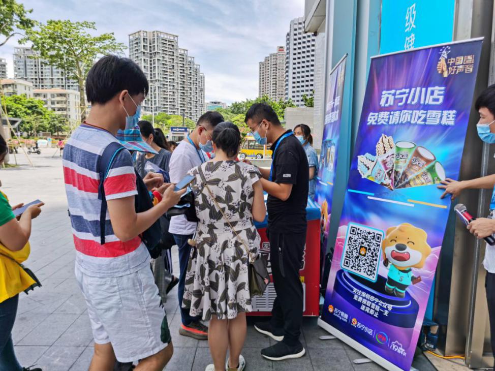 無(wú)獨(dú)有偶,群星廣場(chǎng)蘇寧易購(gòu)門店外的活動(dòng)賽場(chǎng)亦同步在火熱舉行中,7月18日-7月19日,蘇寧聯(lián)合美的一同舉辦中國(guó)好聲音復(fù)賽,活動(dòng)現(xiàn)場(chǎng)熱鬧非凡,做好防疫檢查工作的同時(shí),全力維護(hù)現(xiàn)場(chǎng)治安秩序穩(wěn)定,活動(dòng)現(xiàn)場(chǎng)蘇寧小店展開夏日送清涼活動(dòng),免費(fèi)送冰水雪糕,用“清涼一夏”的愛心之舉,給市民帶去一份夏日關(guān)懷。同時(shí)現(xiàn)場(chǎng)參賽選手三十余位埋藏著夢(mèng)想的音樂人在舞臺(tái)上縱情燃燒,深情獻(xiàn)唱,將活動(dòng)推向了高潮。一同成就粵港蘇寧十九周年最炫的夜晚。