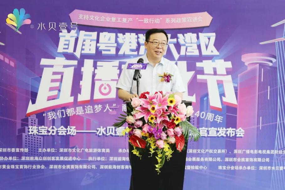 見圳客戶端·深圳新聞網(wǎng)2020年7月21日訊 昨日,支持文化企業(yè)復(fù)工復(fù)產(chǎn)“一致行動”系列政策宣講會暨粵港澳大灣區(qū)直播文化節(jié)珠寶分會場“水貝壹號品牌珠寶集聚地”官宣發(fā)布會在水貝壹號舉行,標(biāo)志著首屆粵港澳大灣區(qū)直播文化節(jié)珠寶分會場“水貝壹號品牌珠寶集聚地”活動正式啟動。