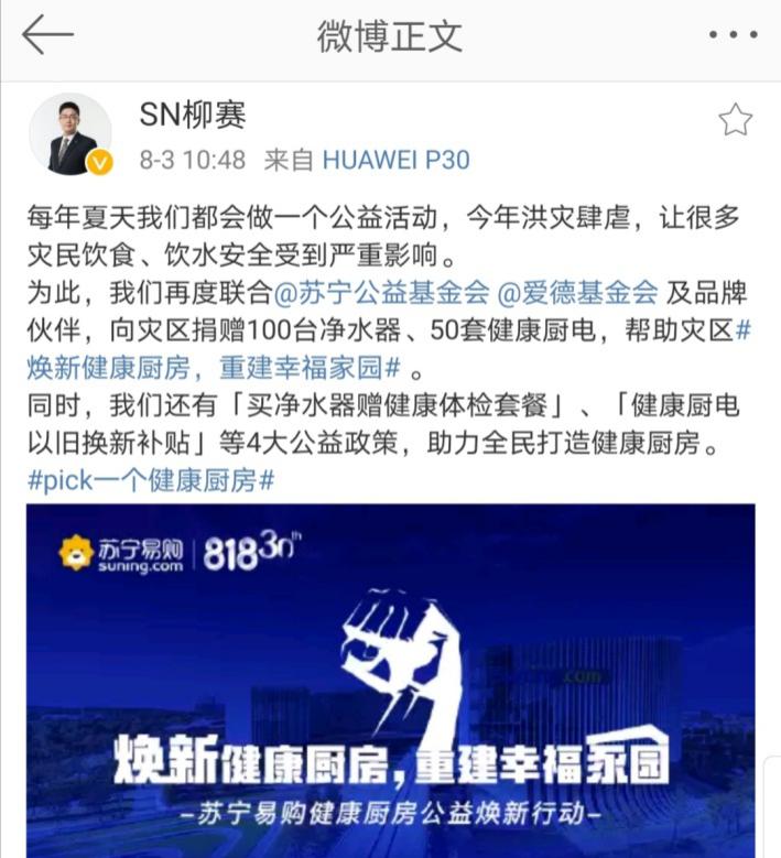 見圳客戶端·深圳新聞網(wǎng)2020年8月4日訊 昨日,蘇寧繼發(fā)布“戰(zhàn)汛六條”后,又聯(lián)合蘇寧公益、愛德基金會及老板電器、美的、A.O.史密斯、安吉爾、法迪歐、惠而浦等各大品牌,發(fā)起“煥新健康廚房,重建幸福家園”公益活動,面向災(zāi)區(qū)送出100臺凈水器、50套健康廚電,并向全民推出四大公益福利政策。