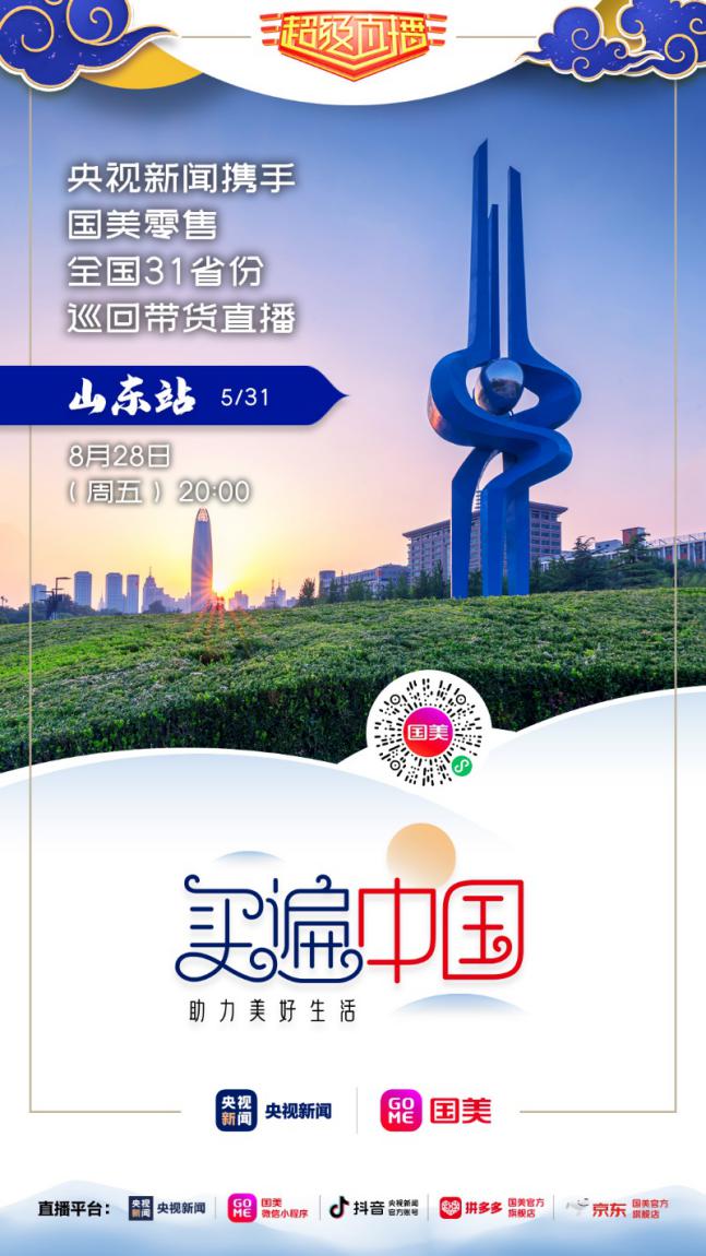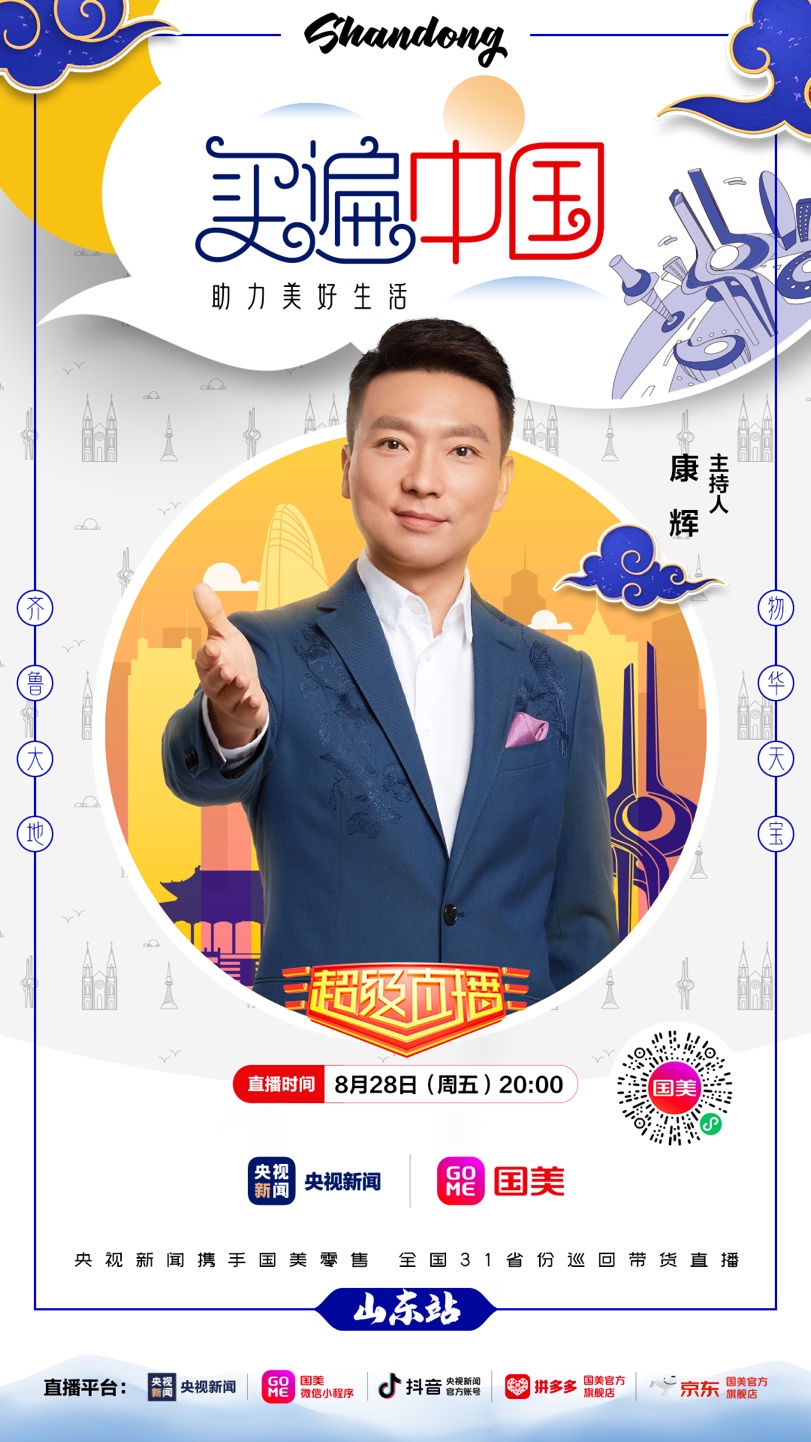 8月28日晚20點(diǎn),記得鎖定國(guó)美微信小程序、拼多多國(guó)美官方旗艦店、京東國(guó)美官方旗艦店,及央視新聞的客戶(hù)端、抖音號(hào),“買(mǎi)遍中國(guó)”山東站直播間,一起來(lái)看“央視大 boy”康輝帶貨狂奔!(常軍平)